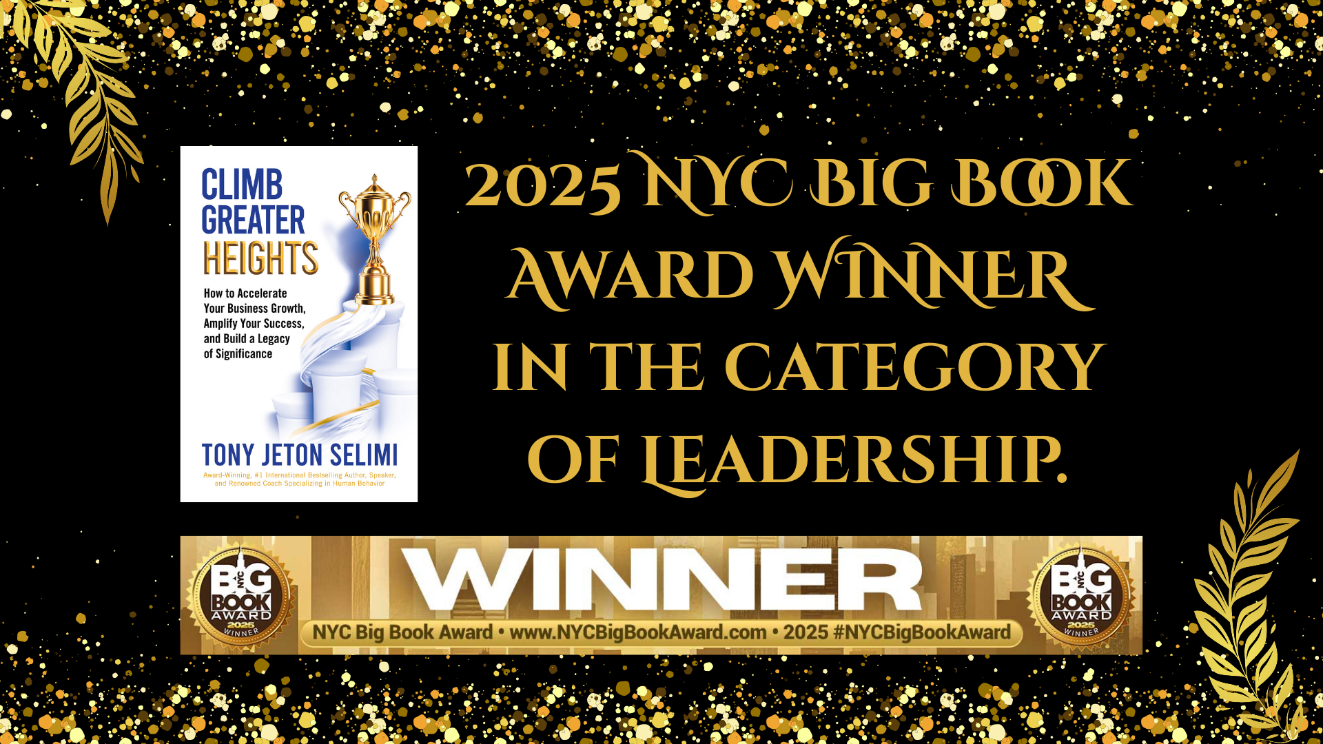 Climb Greater Heights™ secures NYC Big Book Award, cementing Tony J. Selimi’s reputation as a global thought leader in leadership, mindset, and business growth.